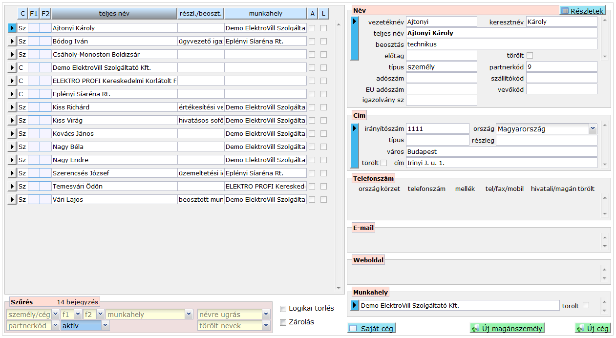 A rendszer használatba vételekor célszerű az első lépések egyikében beállítani a cégünk összes adatát. Ezt a partnerek űrlapon tehetjük meg.