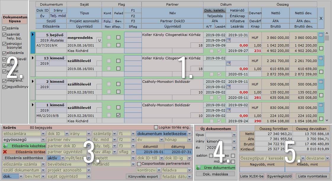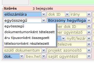 • egy vagy több szűrési feltétel alapján egyes bizonylatokat gyorsan megkereshetünk, egy listába rendezhetünk